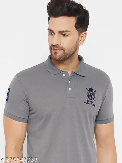 The Million Club Men's Grey Half Sleeves Solid Polo T-shirt